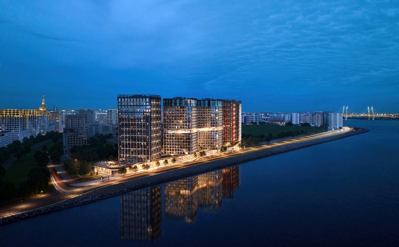 Жилой комплекс находится на Васильевском острове на первой линии Финского залива. Рядом расположен въезд на ЗСД, морской вокзал и пассажирский порт. За 10 минут на автомобиле можно добраться до метро Приморская, а за 20 минут — до стрелки Васильевского острова и Невского проспекта .Проект представляет собой 5 башен высотой от 18 до 22 этажей, возведенных по монолитной технологии строительства с вентилируемыми фасадами из алюмокомпозитных панелей.