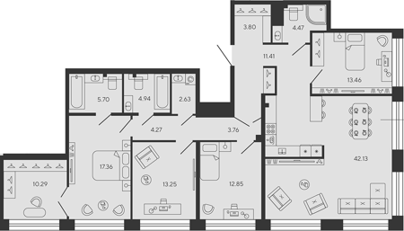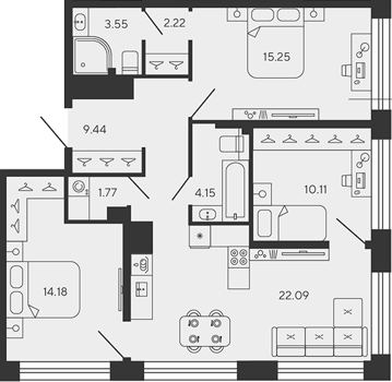Акция действует на квартиры от 2Е-к.кв: предоставляется скидка при семейной ипотеке в размере 5% от стоимости квартиры.