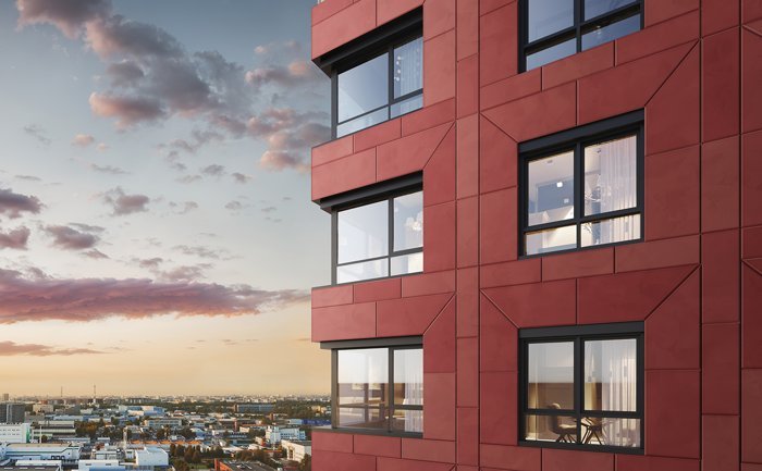 Жилой дом в стиле модернизм спроектирован ведущим российским архитектурным бюро Intercolumnium. Здания получили современный, выразительный облик. Облик, который достигается с помощью пластики фасадов и дизайна входной группы, отсылающего к граням кристаллов.