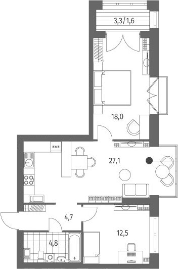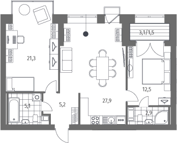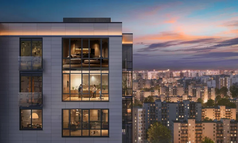В ЖК представлено множество планировочных решений: от классических однокомнатных до 4-ех комнатных квартир европейского формата. Сдаются они без отделки и потолками высотой 2,72 метра.