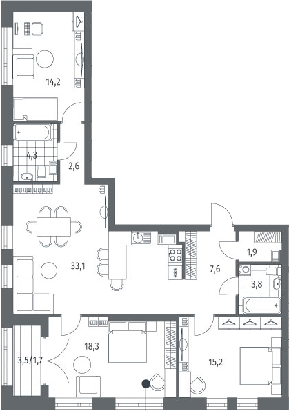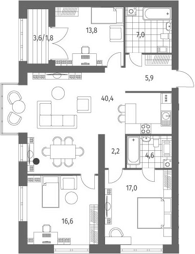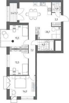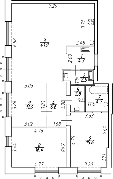 Площадь от 75.86 м2