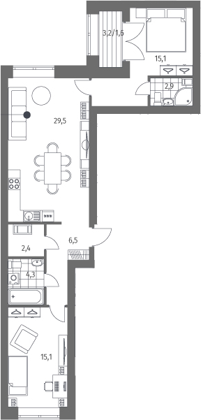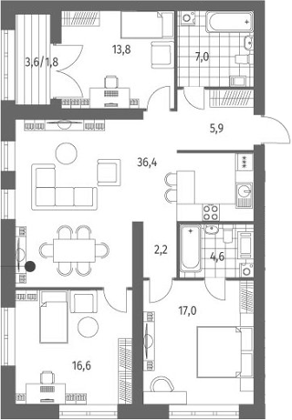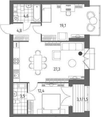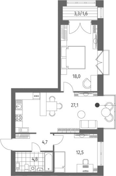Площадь от 60.12 м2