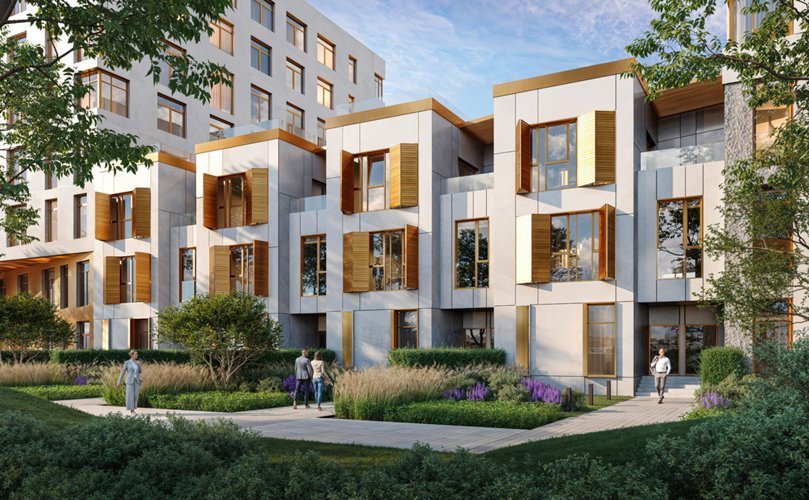 В проекте предусмотрено множество планировочных решений: квартиры с видовыми характеристиками, с угловым остеклением, с открытыми террасами, с окном в ванной и гардеробной, с возможностью оборудовать сауны. Сдаются они без стен, высотой потолков 3 метра и увеличенными окнами. Также в комплексе спроектированы трехэтажные сити-виллы.