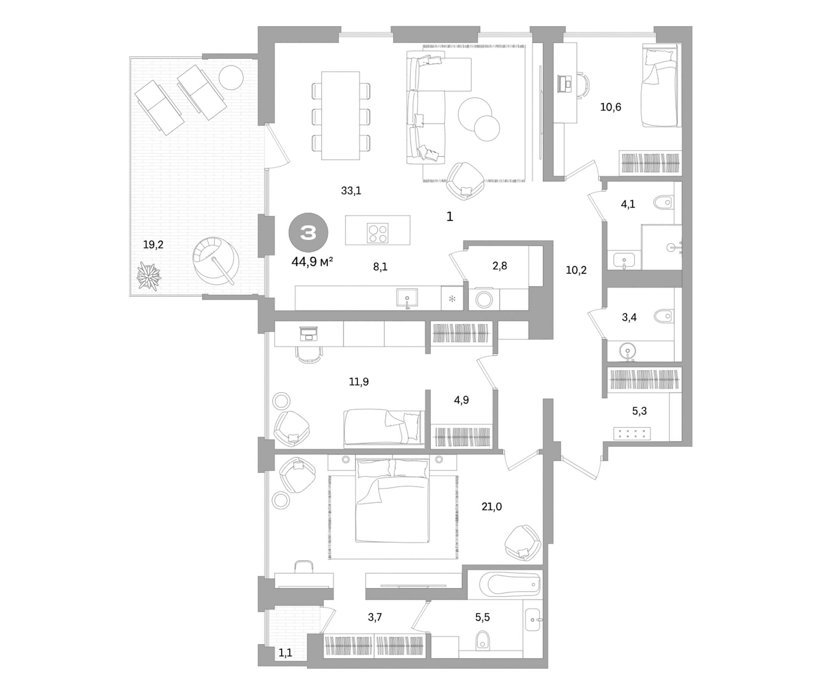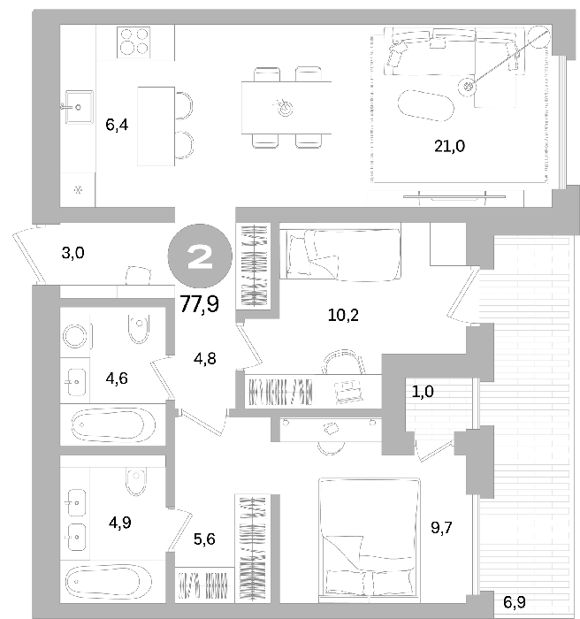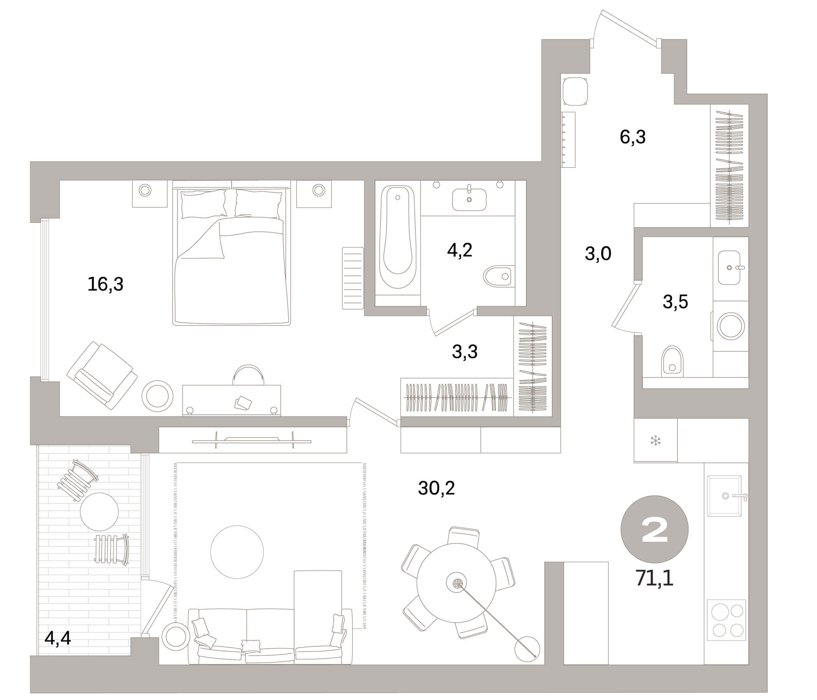 Здесь много лотов с панорамными окнами в пол и летними помещениями. На верхних этажах урбан-вилл террасы особенных квартир защищены от ветра и осадков витражным остеклением — это так называемые веранды, которыми вы сможете пользоваться круглый год.