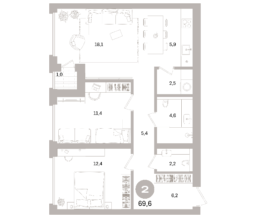 В ЖК предложено множество планировочных решений: в наличии квартиры классического типа, таунхаусы, а так же квартиры с уникальным входом и палисадником. Лоты сдаются с увеличенными окнами, высотой потоков от 3,1 до 3,6 метров и подчистовой отделкой.