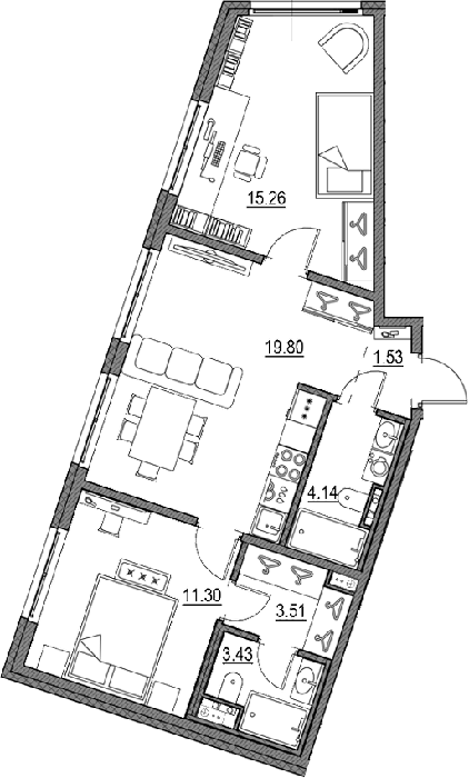 В проекте представлены квартиры различных планировок. Жилье передается в технологически подготовленном состоянии (комплектация TechnoBox), с увеличенными окнами и высотой потолков от 2,7 до 3 метров. Пространства адаптированы для интеграции технологических решений, включая систему «умный дом» и вентиляцию с функцией очищения воздуха.