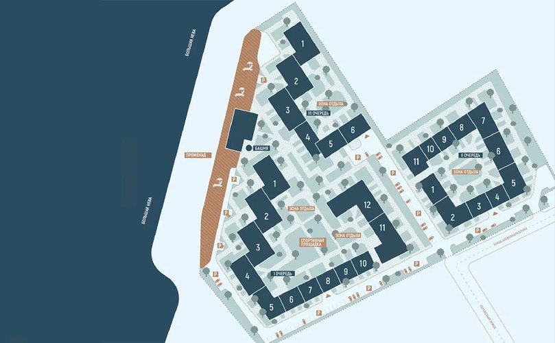 Приватная территория, сочетающая камерную атмосферу и комфорт, была создана ведущими урбанистами города. Проектом предусмотрен одноуровневый подземный паркинг под жилыми корпусами и дворовым пространством, а также гостевые парковочные места по периметру квартала.