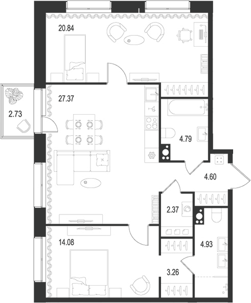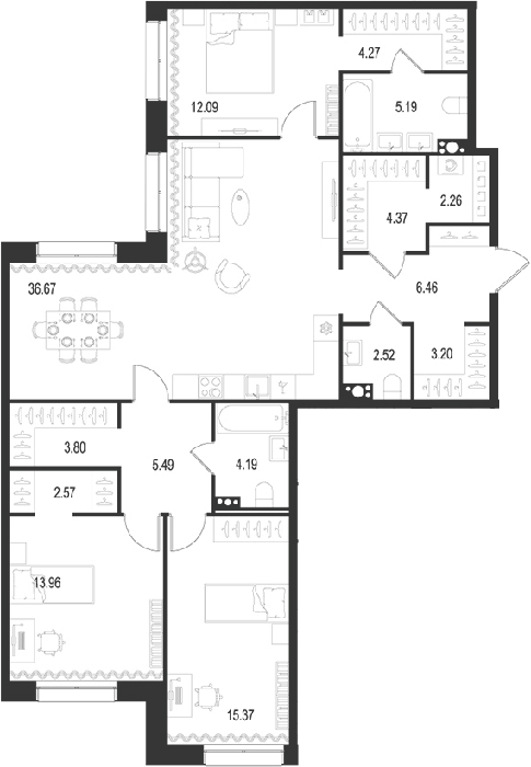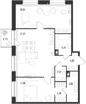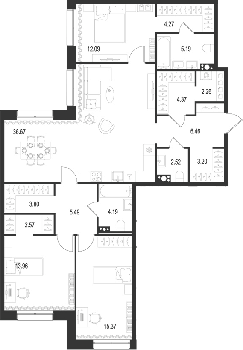 В проекте представлены студии и квартиры с 1, 2 и 3 спальнями, также есть варианты с европланировками. В помещениях предусмотрены потолки от 2,7 до 3,6 метров и увеличенные окна, откуда открываются живописные виды на набережную Невы.