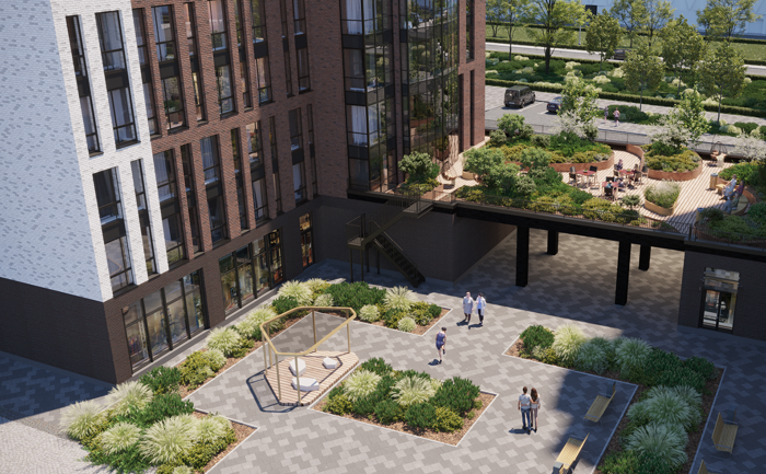 Вся территория квартала связана единой концепцией благоустройства, разработанной ландшафтным бюро L.BURO. Она включает в себя пейзажные зоны, интерактивные композиции, площадки для детских игр, прогулок с колясками, отдыха и занятий спортом. На стилобатах 1 и 4 корпусов обустроены общественные видовые террасы с лаунж-зоной и местами для работы.