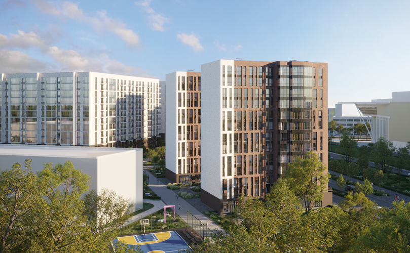 Элегантный модернизм в сочетании с игрой пространственных форм и цветовым ритмом. Цветовая гармония фасадов раскрывает характер квартала.Коричневый цвет клинкерного кирпича с водными штрихами — цвет уюта и безопасности,
