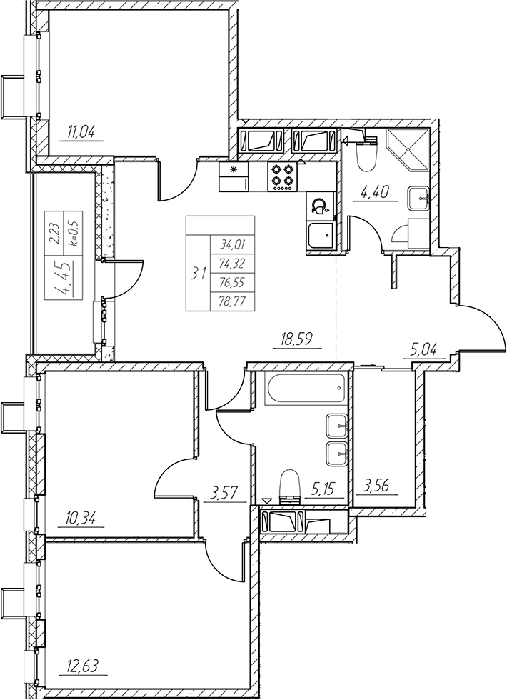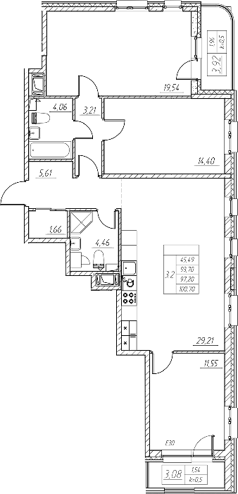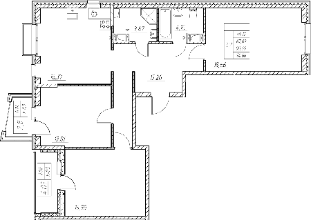 В проекте представлены просторные квартиры с правильной геометрией комнат, нишами для шкафов, гардеробными, просторными ванными комнатами и с мастер-спальнями. Сдаются они с высотой потолков 2,7 метров, увеличенными окнами, отделкой White Box и чистовой отделкой в 2-х цветовых решениях.