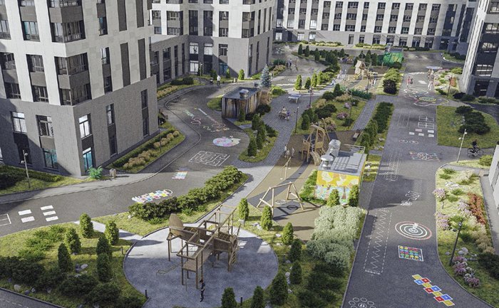 Приватность квартала создаёт закрытый благоустроенный двор, ограниченный от машин и посторонних. Безопасность гарантируют системы видеонаблюдения и контроля доступа.