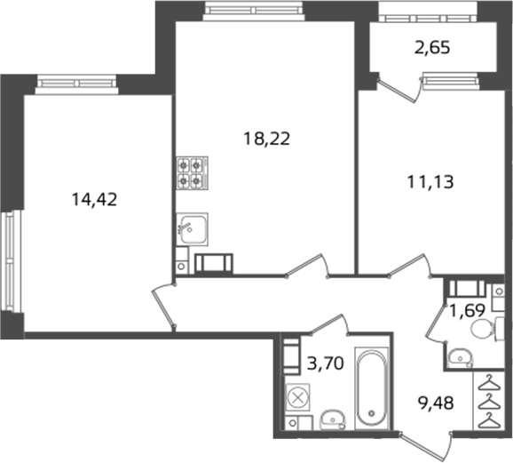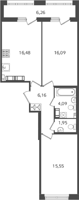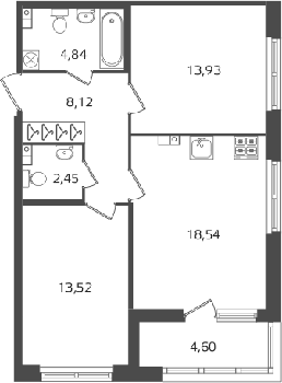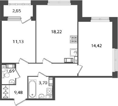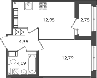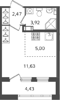 Площадь от 24.38 м2