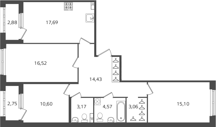 Площадь от 79.07 м2