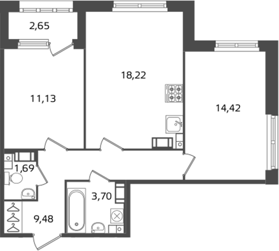 Площадь от 59.47 м2