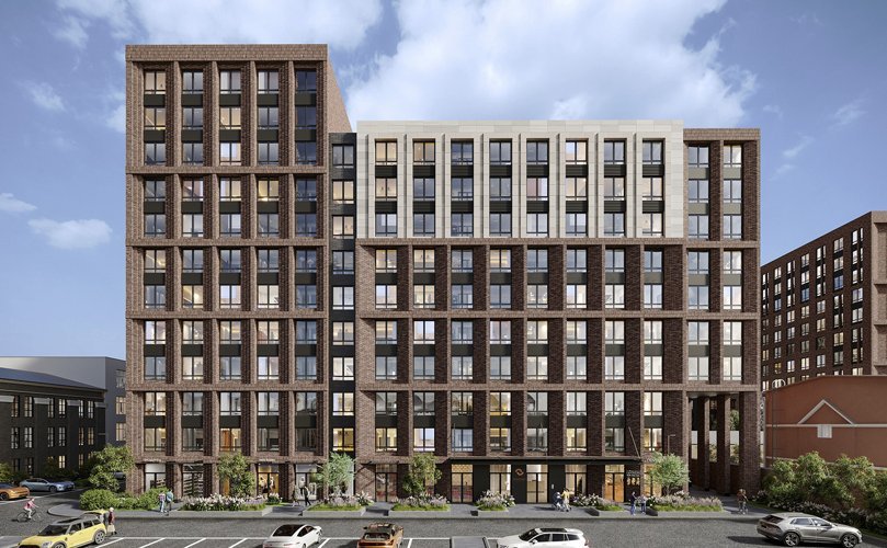 Жилой комплекс представляет собой монолитный дом переменной этажности от 10 до 12 этажей, спроектированный студией «INTERCOLUMNIUM». В здании предусмотрена центральная входная группа с дизайнерской отделкой в современном стиле, стойкой ресепшн и зоной ожидания.
