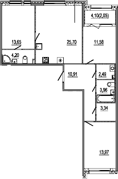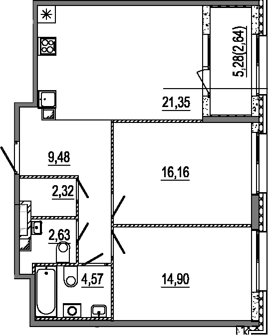 В проекте предусмотрены различные планировочные решения как классического, так и евроформата. В большинстве квартир предусмотрены балконы или лоджии. Квартиры сдаются с подчистовой отделкой, с высотой потолков от 2,9 до 3,05 метров и увеличенными окнами. На первом этаже предлагаются сити-виллы с собственным входом и высотой потолков 3,9 метров.