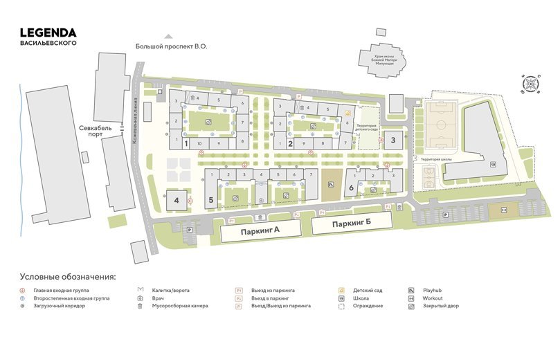 Жилой комплекс расположен в Василеостровском районе. Рядом находятся Севкабель порт, Брусницин холл, Финский залив. До метро «Василеостровская» можно добраться за 10 минут на автомобиле.