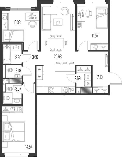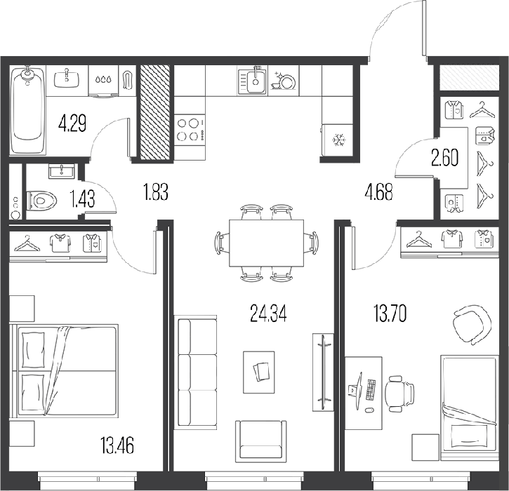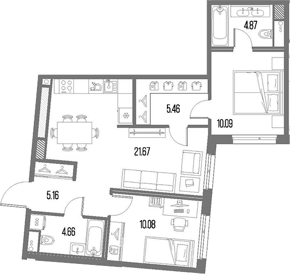 В проекте предложено множество планировочных решений: квартиры-студии и эргономичные квартиры различной комнатности. Сдаются они с подчистовой отделкой, увеличенными окнами и высотой потолков 2.7 метров, а на последнем этаже – 3 метра.