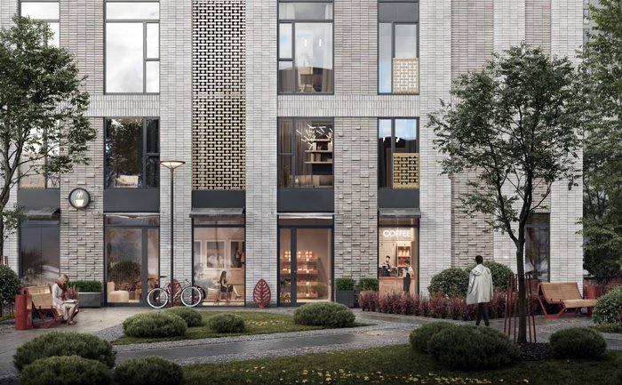 Территория жилого комплекса организована по концепции двора без машин. Придомовое пространство озеленено и благоустроено: установлены детская и спортивная площадки, а также зоны отдыха. На 1 этаже зданий предусмотрены коммерческие помещения. Для владельцев авто обустроен подземный паркинг.