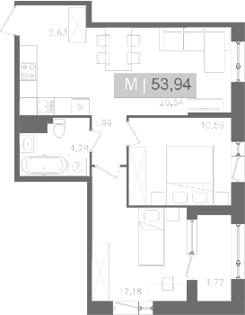 В проекте предлагаются студии и квартиры с 1–3 комнатами, включая европланировки. Все помещения оснащены панорамными окнами, также предусмотрены французские балконы. Высота потолков составляет 2,9 метра. Жилье передается с чистовой отделкой и оборудовано умной системой управления inHOME 3.0.