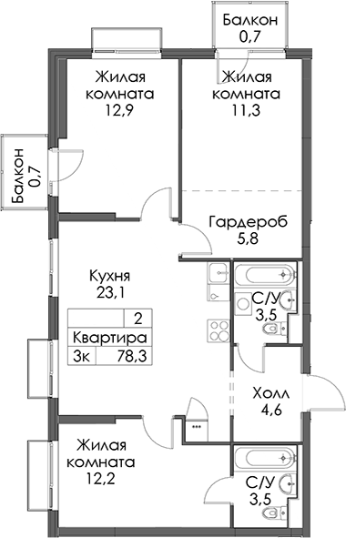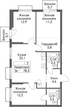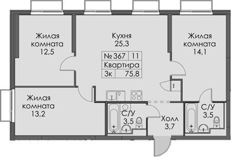 Площадь от 75.8 м2