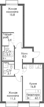 Площадь от 31.9 м2