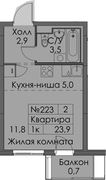 Площадь от 19.9 м2