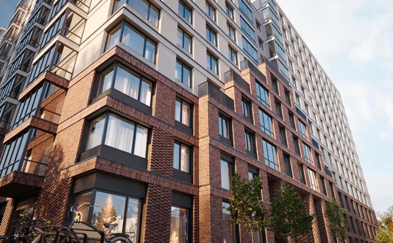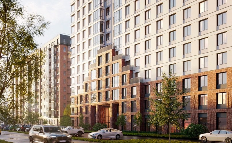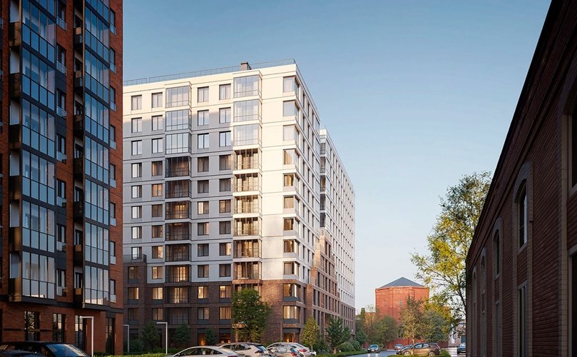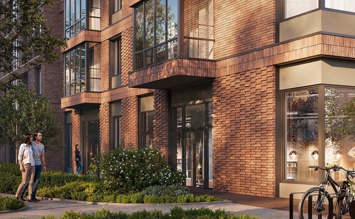 Фасады выполнены с акцентными декоративными элементами, отсылающими к образу бывшего пакгауза Варшавского вокзала. Контраст теплого кирпича и светлой штукатурки подчеркивает композиционный ритм, 3D-кладка и вертикальные акценты формируют динамичную архитектуру. В проекте используется эксклюзивный дизайн-код с элементами промышленной кирпичной архитектуры, который поддерживает общий характер внешнего облика.