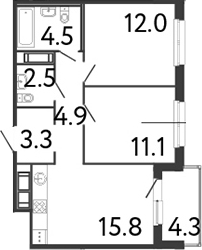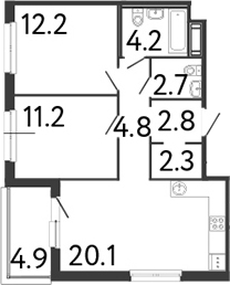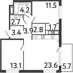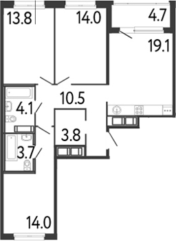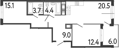 В проекте представлено 355 квартир: студии и лоты с 1-3 комнатами, включая европланировки. Площадь квартир варьируется от 25,1 до 93 кв. М. Высота потолков составляет 2,72 м на типовых этажах и 3,01 м на верхних.